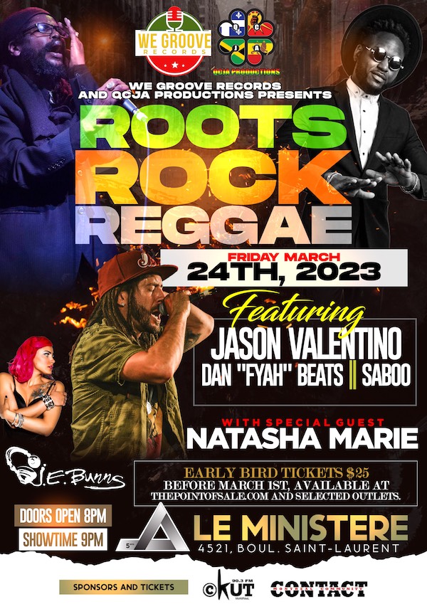 We Groove Records et QCJA Productions présentent Uptown Reggae Night, avec Blessed, nominé 12 fois aux Juno Awards, Saboo et Kayla Allen, accompagnés du Gaya Band, et DJ Big Worm.